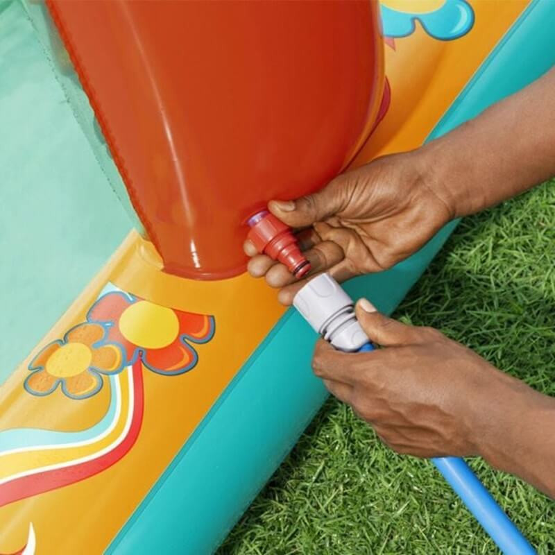 Frissítő vízpermetező: Csatlakoztasd a kerti tömlőhöz, és hagyd, hogy a gyerekek a forró nyári napokon is felfrissüljenek!