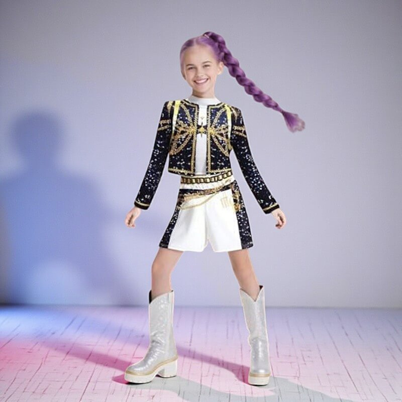 A szett tartalmaz mindent ami igazán K-Pop, Démonvadász külsőt kölcsönöz. Rumi életrekelhet és fellépő ruhát ölthet magára. Nyomott mintás