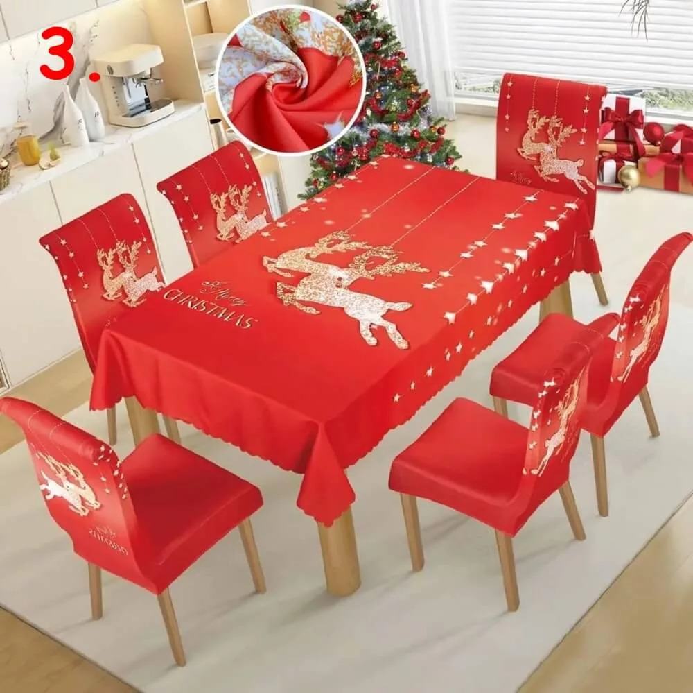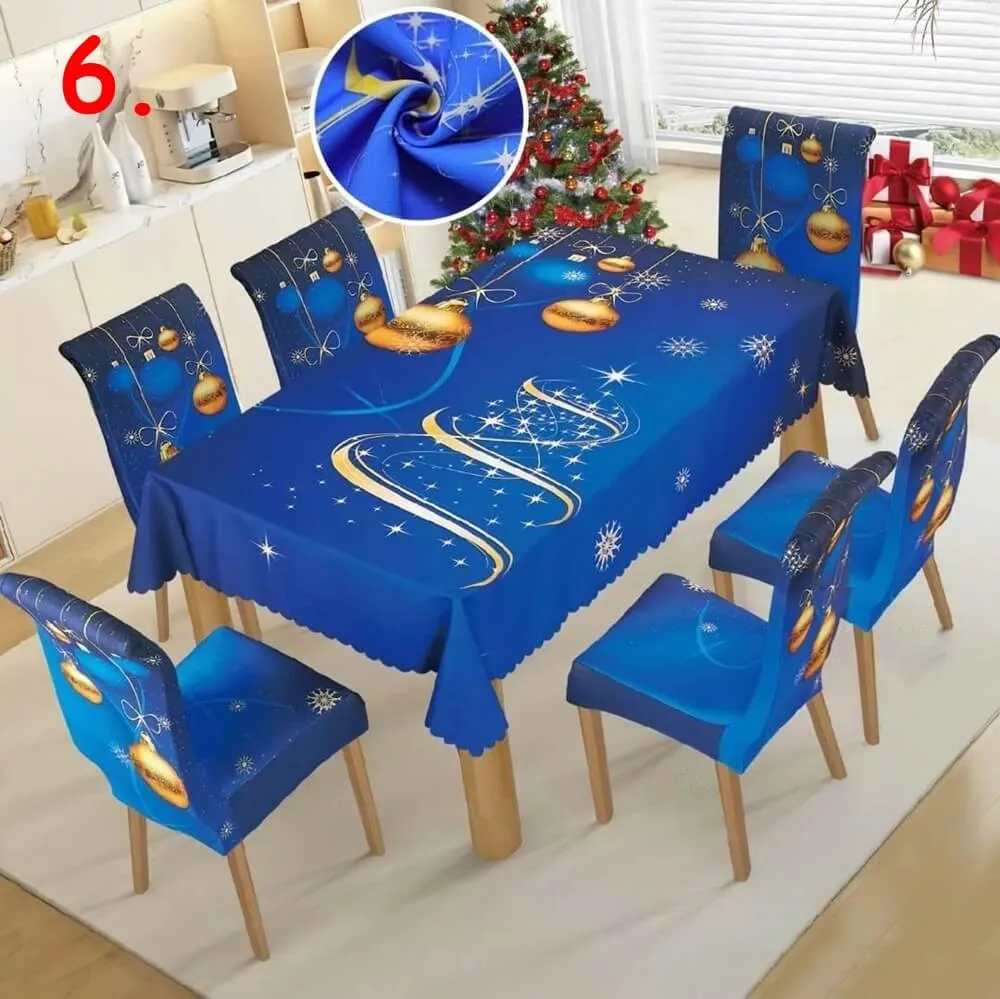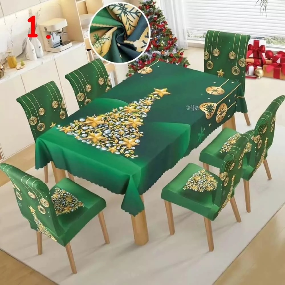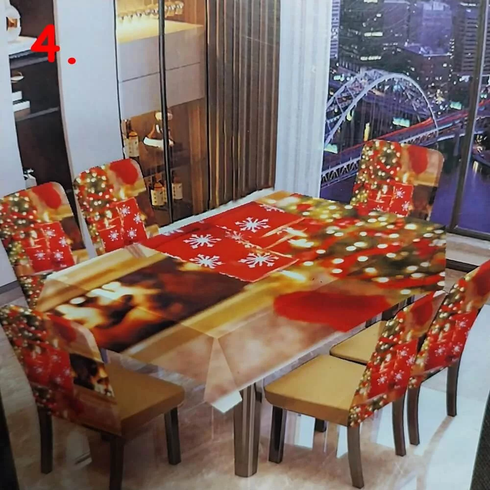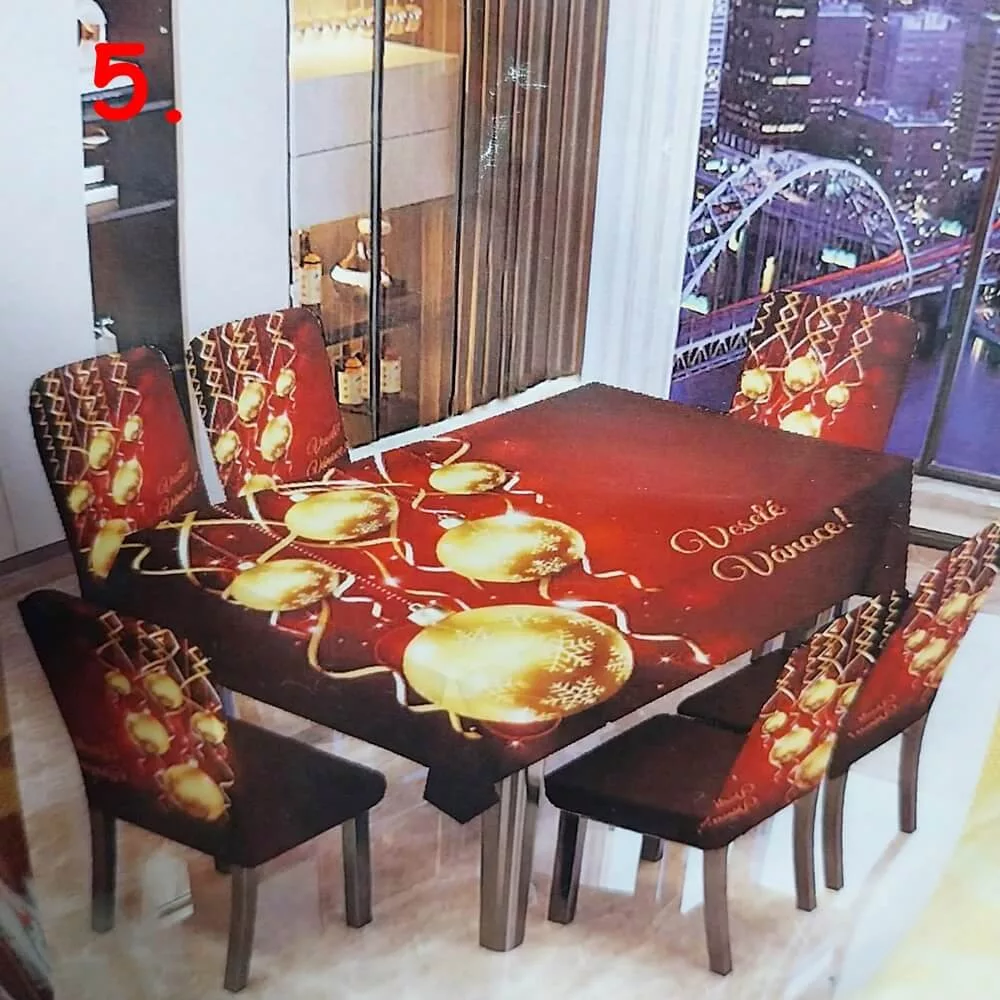 A csomag 1db asztalterítőt és 6db székhuzatot tartalmaz.