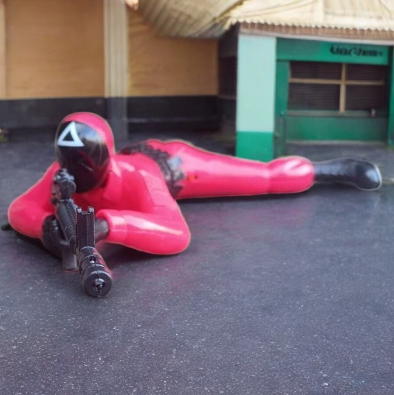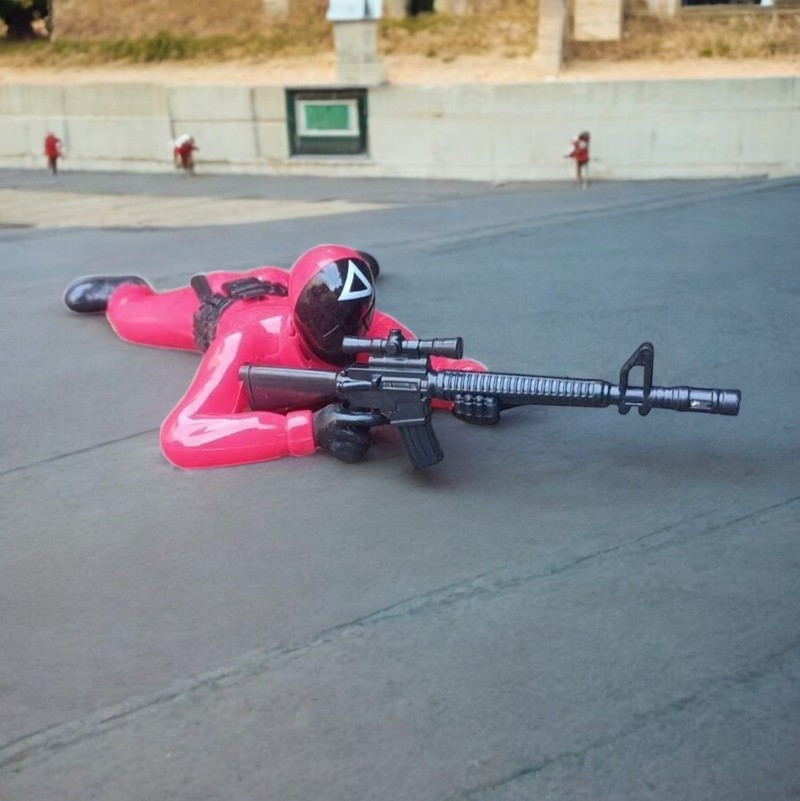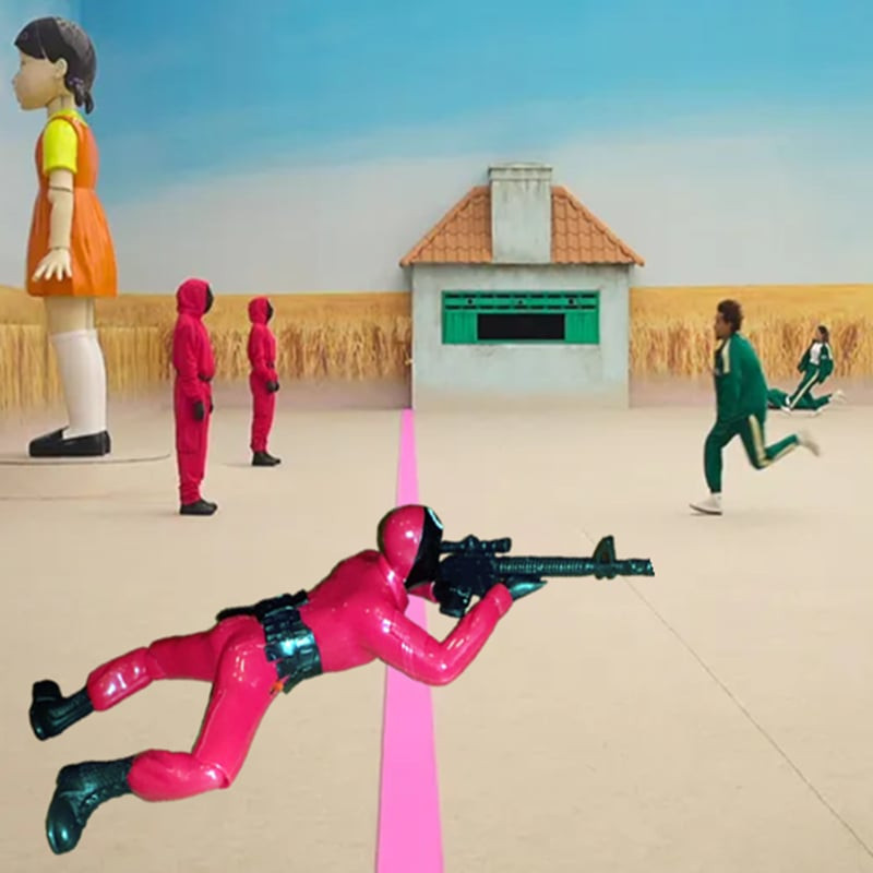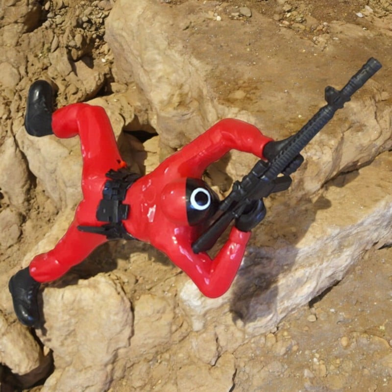 Squid game rajongóknak kötelező darab. A katona kúszik, megáll, egy sorozatot majd tovább kúszik.